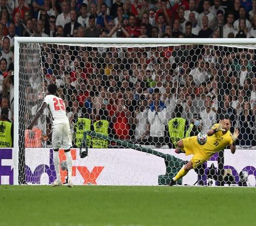 2021年7月11日,欧洲杯决赛,英格兰与意大利战成1-1后进入点球大战。拉什福德与桑乔接连罚丢点球,第5轮,小将萨卡主罚的点球被多纳鲁马扑出,意大利夺得了冠军。三狮军团再次魂断12码,成为了“三失军团”。